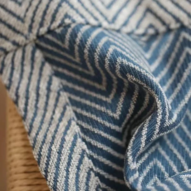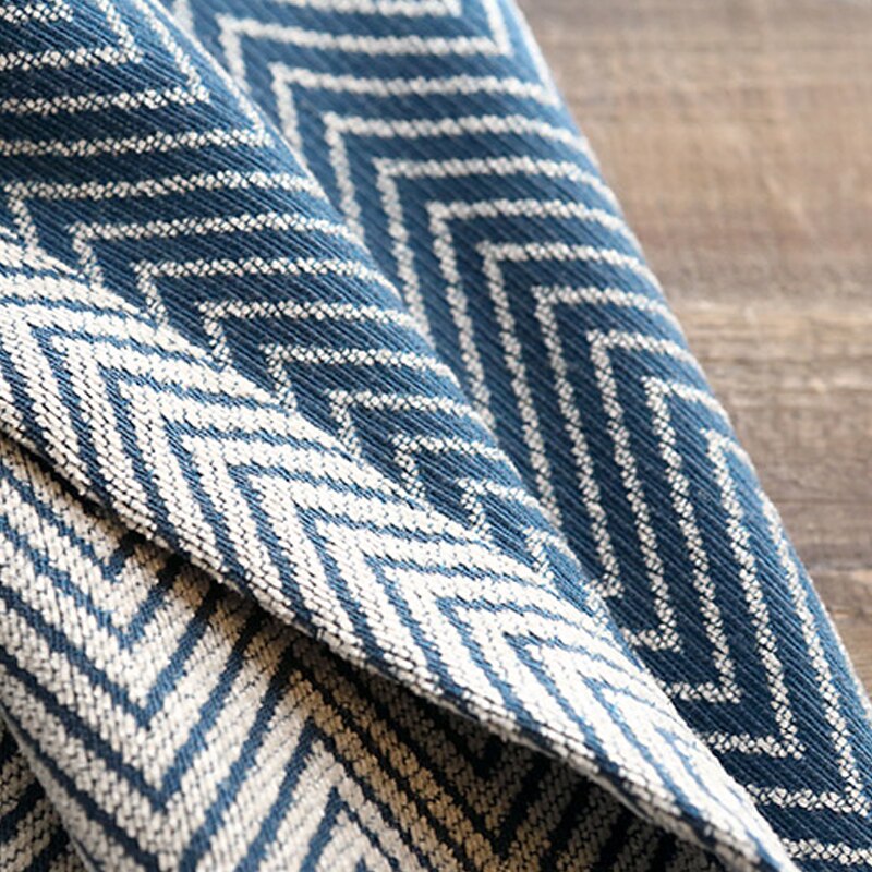 Få ro og stil med dit blå mørklægningsgardin med sildebensmønster