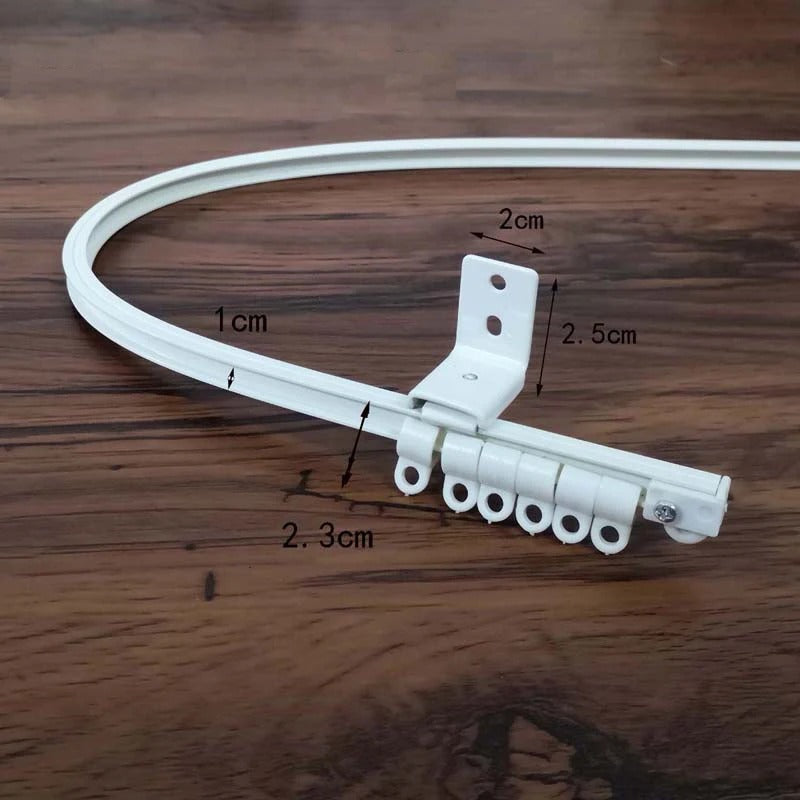 Med vores bøjelige gardinskinne til skæve vinkler kan du endelig opnå den gardinløsning, du altid har drømt om. Den hvide skinne er diskret og passer ind i de fleste indretninger, mens dens holdbare konstruktion sikrer, at dine gardiner hænger sikkert og smukt. Målene på skinnen er 1 cm i højden og 2,3 cm i dybden, hvilket gør den kompakt og pladsbesparende. De medfølgende løbere (som ses på billedet) sikrer, at dine gardiner glider ubesværet, og den lille endeprop på 1,5 cm x 2 cm sikrer en pæn afslutning. Uanset om du ønsker at skabe en hyggelig krog, en elegant buet vinduesparti eller blot en praktisk løsning til et udfordrende hjørne, er denne skinne dit ideelle valg.