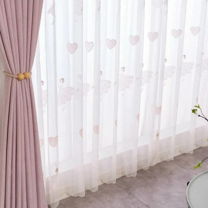 Giv dit barn et værelse fyldt med drømme med dette Børnegardin med broderet ballerina motiv.
