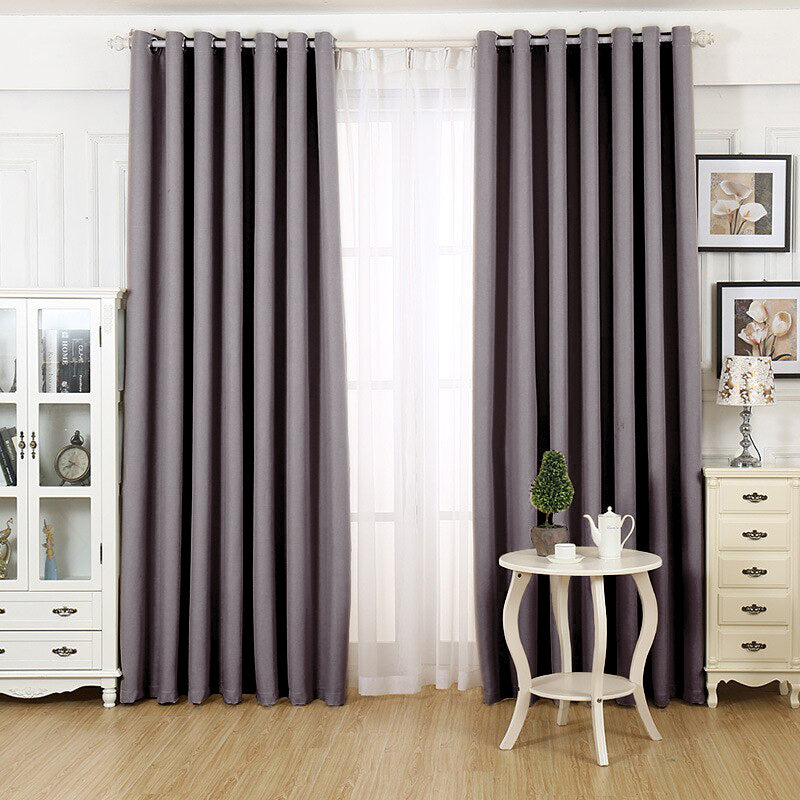 Ensfarvet gråt mørklægningsgardin til soveværelse