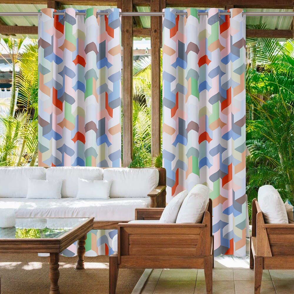 Oplev elegance og funktionalitet med vores Farverigt udendørs gardin med geometrisk mønster. Designet til at give dit rum stil og hygge, kombinerer den raffineret design med praktisk anvendelighed.