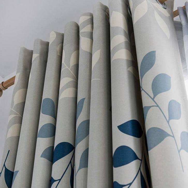 Giv dit hjem et strejf af naturen med dette Gardin med blå blade motiv.