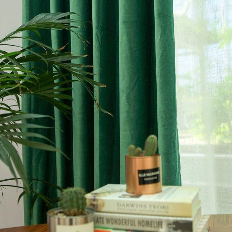 Gør dit hjem komplet med et grangrønt mørklægningsgardin i velour look