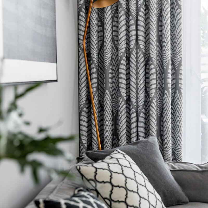 Skab den perfekte atmosfære med vores Gråt mørklægningsgardin med bladmotiv
