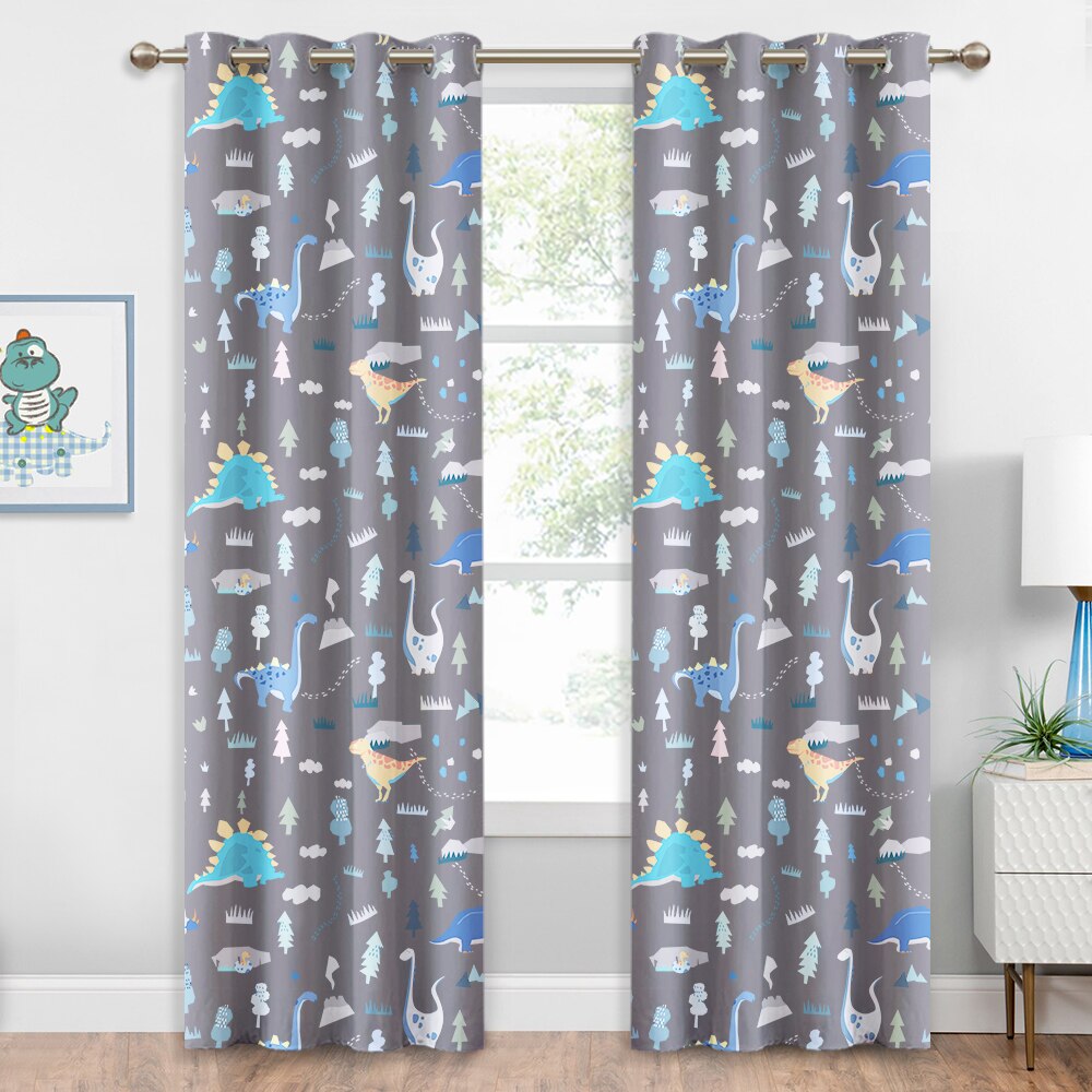 Skab den Perfekte Atmosfære med Gråt Mørklægningsgardin med Dinosaurer