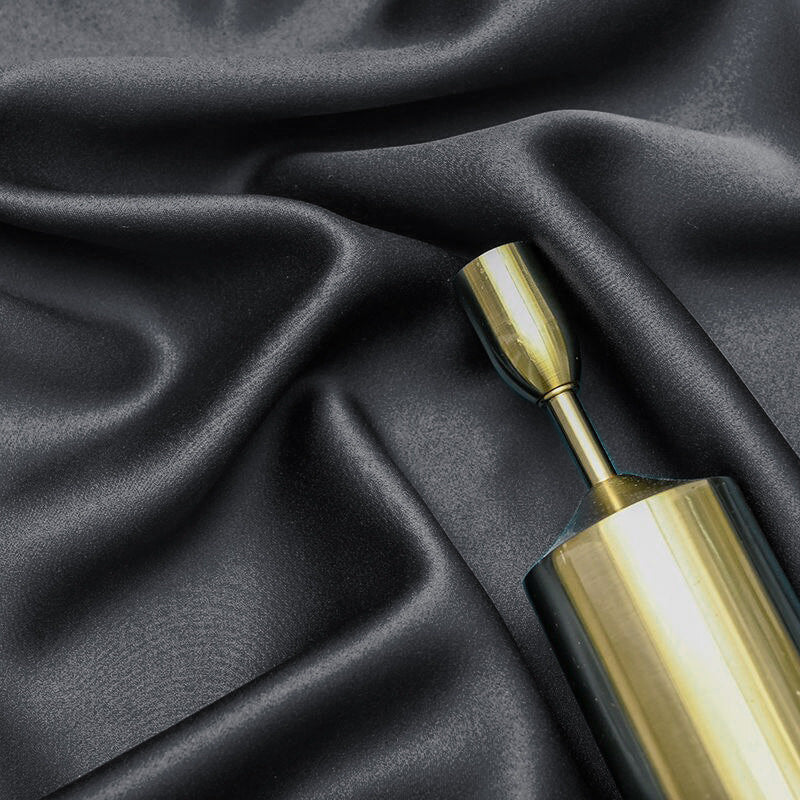 - Stilfuldt gråt stof med elegante gyldne blomstermotiver.