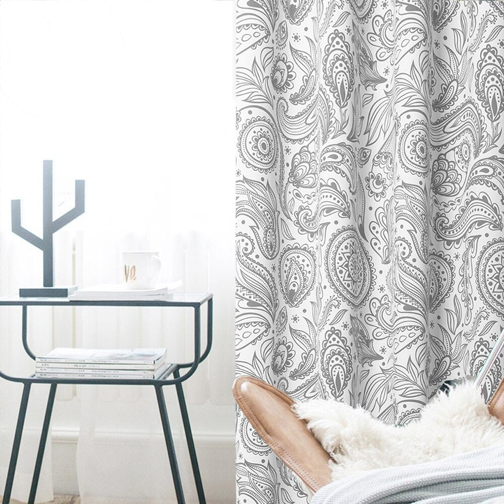 Få den perfekte stemning med dit Hvidt gardin med gråt paisleymønster