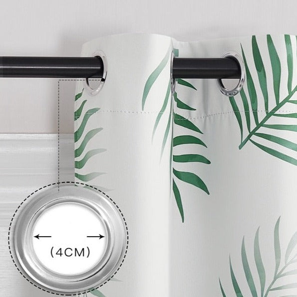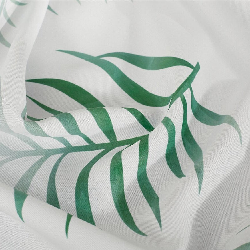 Skab din egen grønne oase med et hvidt gardin med grønne palmeblade og nyd et frisk og indbydende hjem hver dag.