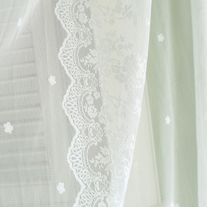 Hvidt gennemsigtigt gardin med blonder
