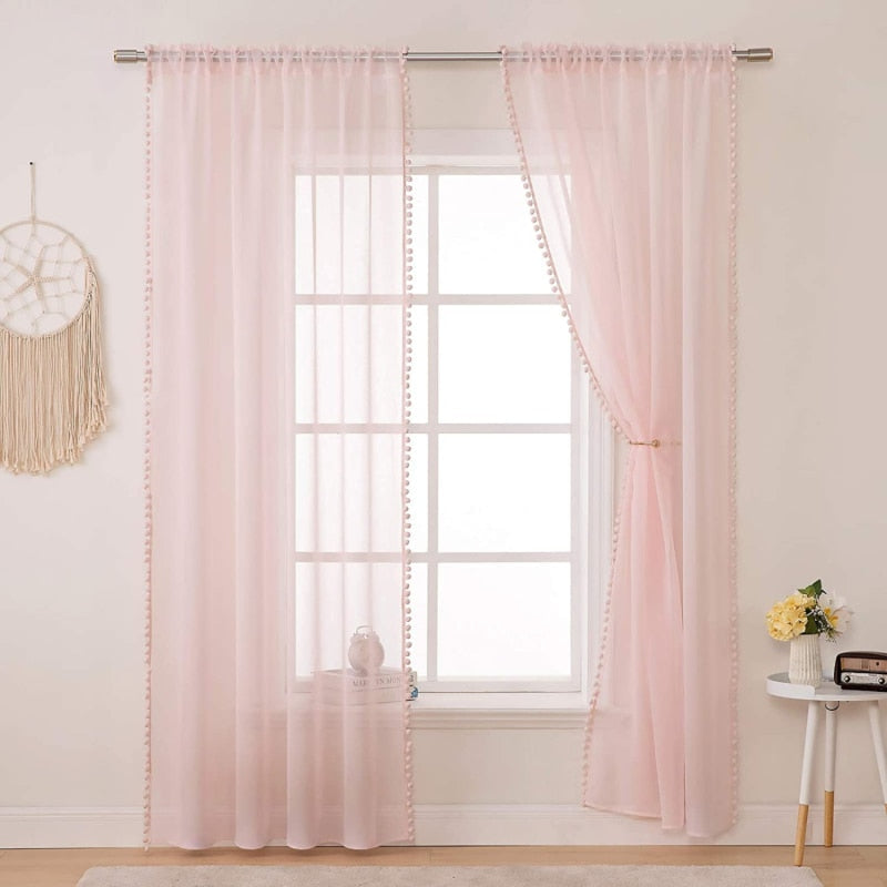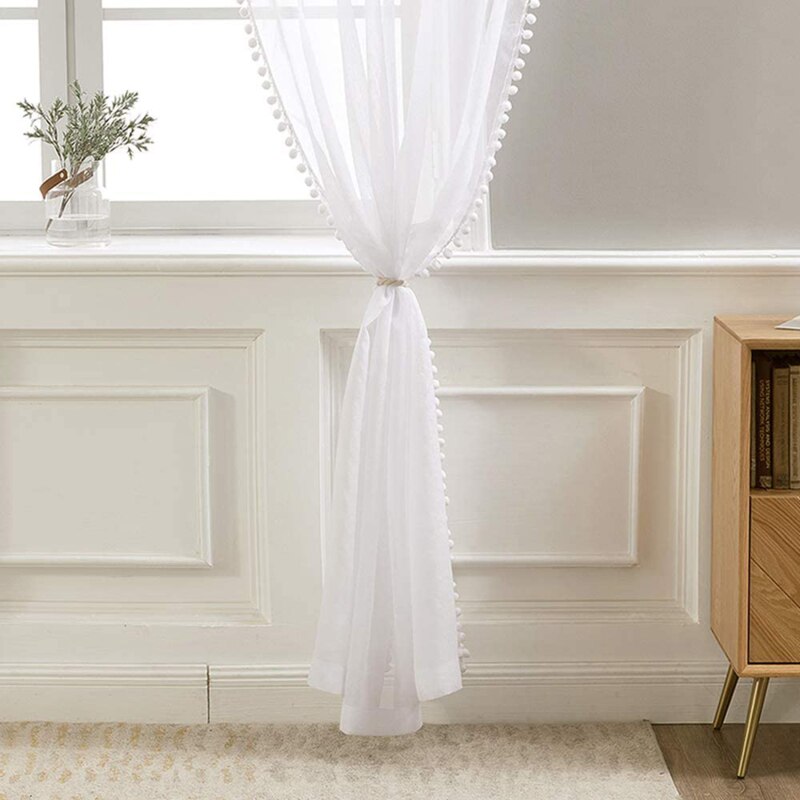Oplev lethed og charme med vores Hvidt let gardin med pompon-kant