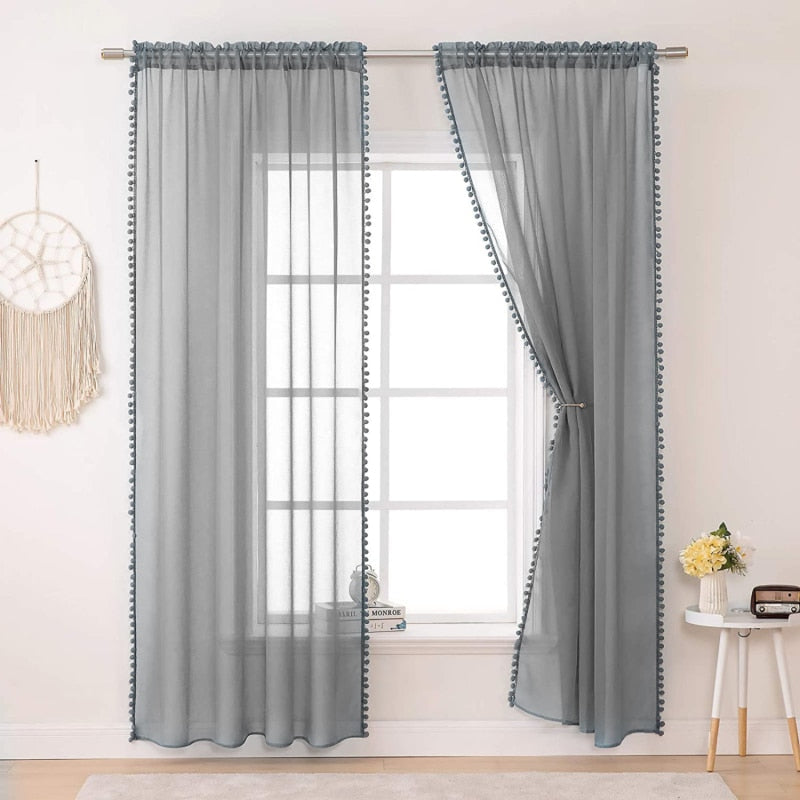 Giv dit hjem den opgradering, det fortjener, med vores stilfulde og funktionelle Hvidt let gardin med pompon-kant. Det er en investering i både stil og velvære.