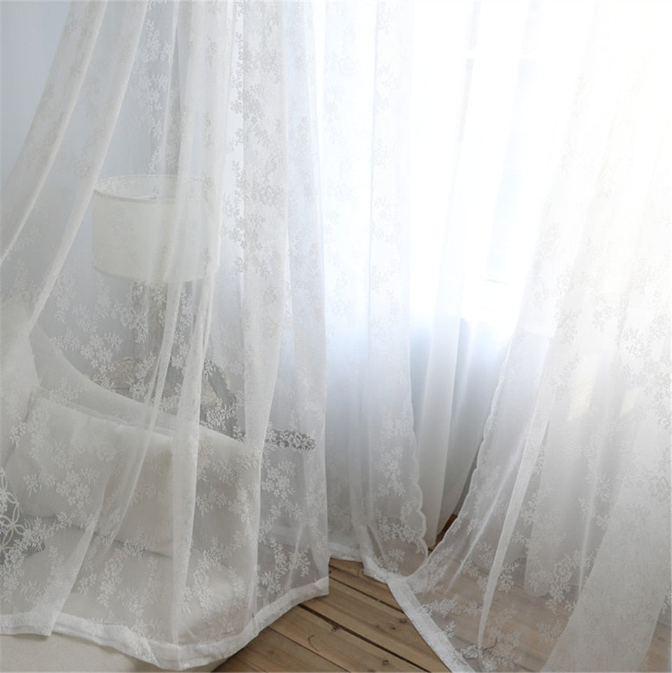 - Delikat og romantisk design: Det hvide romantiske gardin med blonder har et smukt blomstermønster, der skaber en drømmende atmosfære.