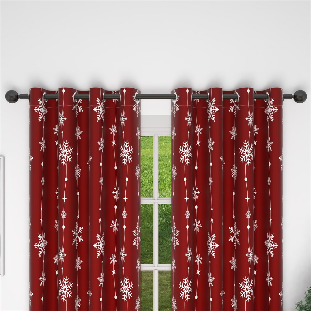 Vores Julegardin med snefnug mønster er designet til at give dit hjem den ultimative julestemning. Den dybe røde farve er klassisk og tidløs, mens de legesyge snefnug tilføjer et strejf af vintermagi. Gardinerne er nemme at hænge op og falder flot, hvilket giver et elegant udtryk i ethvert rum. Forestil dig, hvordan det bløde lys udefra filtreres gennem gardinet og kaster et varmt skær over dit julepynt. Det er den lille detalje, der gør en stor forskel og skaber en hyggelig ramme for dine juletraditioner. Inviter julen indenfor med stil og komfort.