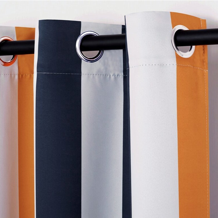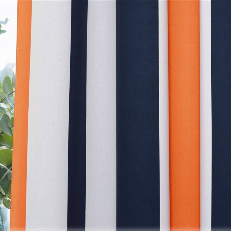Forvandl dit barns værelse til et hyggeligt og afslappende sted med vores charmerende korte stribede mørklægningsgardin. Dette gardin er designet specifikt til børneværelser og blokerer effektivt for lyset, så dit barn kan få en uforstyrret søvn, selv når solen skinner. Med sine livlige striber i marineblå, hvid og en varm orange, tilføjer det et muntert og stilfuldt touch til ethvert rum. Forestil dig, hvordan disse farver kan inspirere til leg og kreativitet om dagen, og skabe en beroligende atmosfære, når det er tid til at falde i søvn.