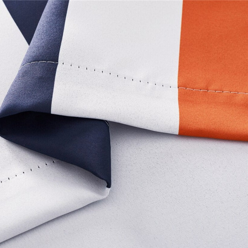 - Stilfuldt design: Moderne striber i marineblå, hvid og orange, der pynter i ethvert børneværelse.