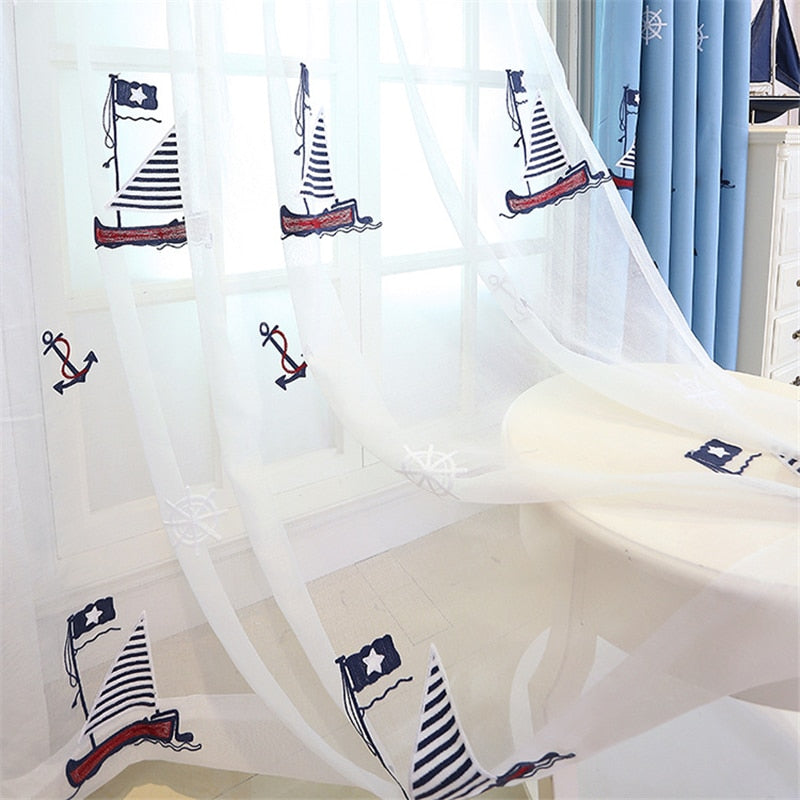 Skab din egen kystdrøm med et let gardin med broderet sejlbåd