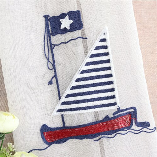 Oplev charmen ved et let gardin med broderet sejlbåd