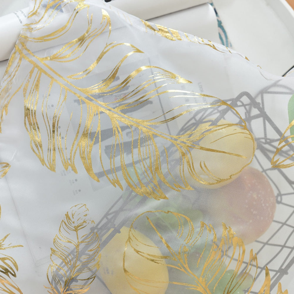 Forestil dig at vågne op til solens første stråler, der blidt filtreres gennem de fine fjer, der funkler i morgenlyset. Dette lette gardin med gyldne fjer er ideelt til soveværelset, stuen eller spisestuen, hvor det kan bidrage til en afslappende og inspirerende atmosfære. Den hvide, gennemsigtige baggrund lader dagslyset strømme frit ind, mens de gyldne fjer giver en subtil glamour, der løfter rummets æstetik. Det er nemt at hænge op og vedligeholde, hvilket gør det til et praktisk valg for den moderne boligejer. Lad dette gardin fortælle en historie om elegance og lethed i dit hjem.