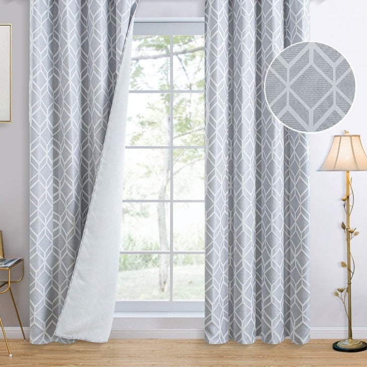 Dit nye Lysegråt mørklægningsgardin med geometrisk mønster er den perfekte opgradering til dit hjem.