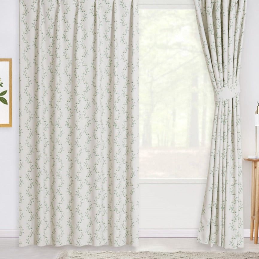 Skab et naturligt udtryk med et lyst gardin med diskret bladmønster