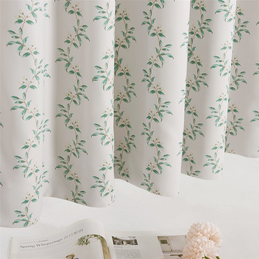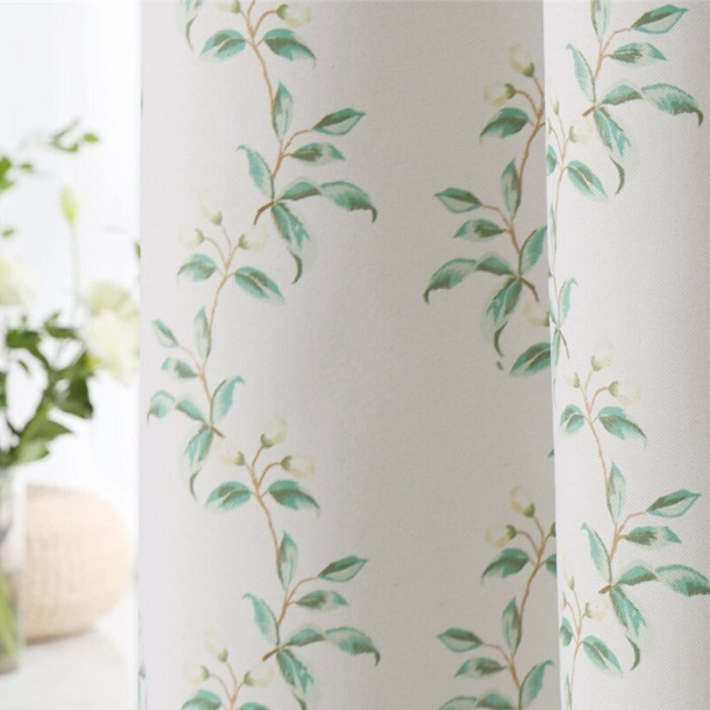 Et lyst gardin med diskret bladmønster, der inspirerer