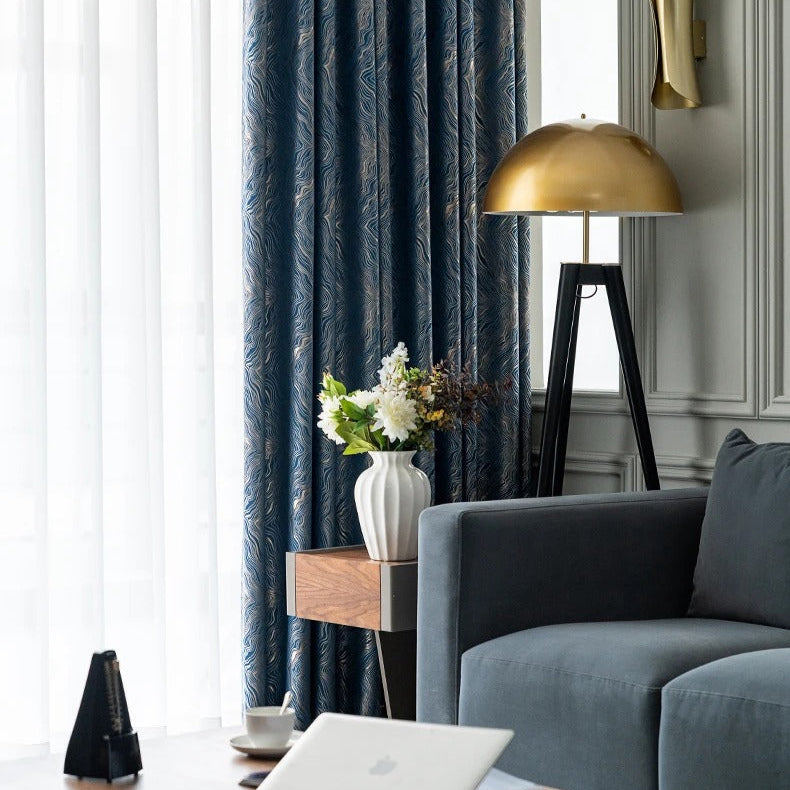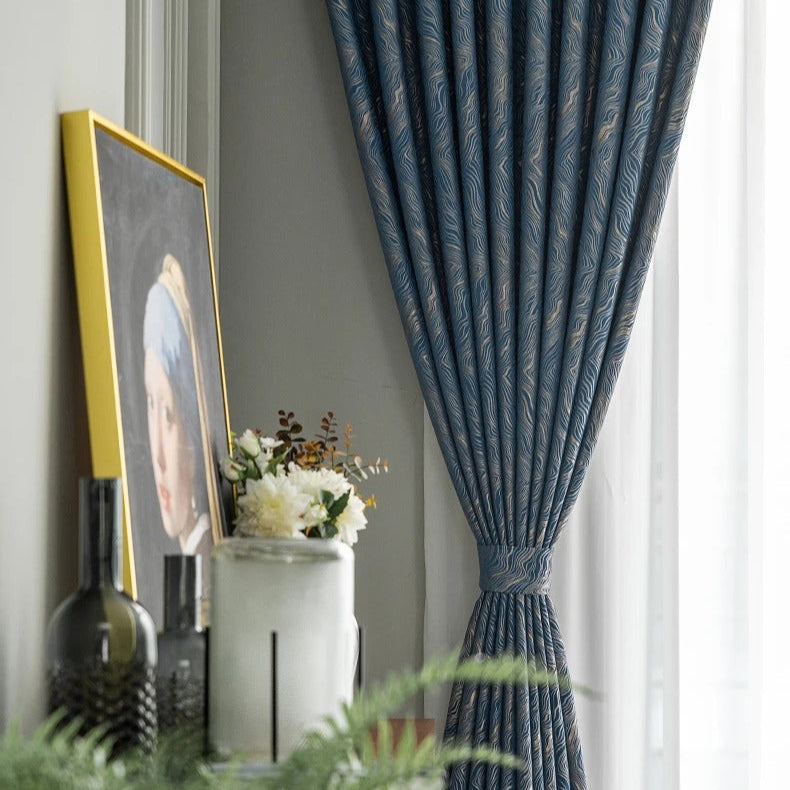 Oplev stil og ro med Midnatsblåt mørklægningsgardin med struktur