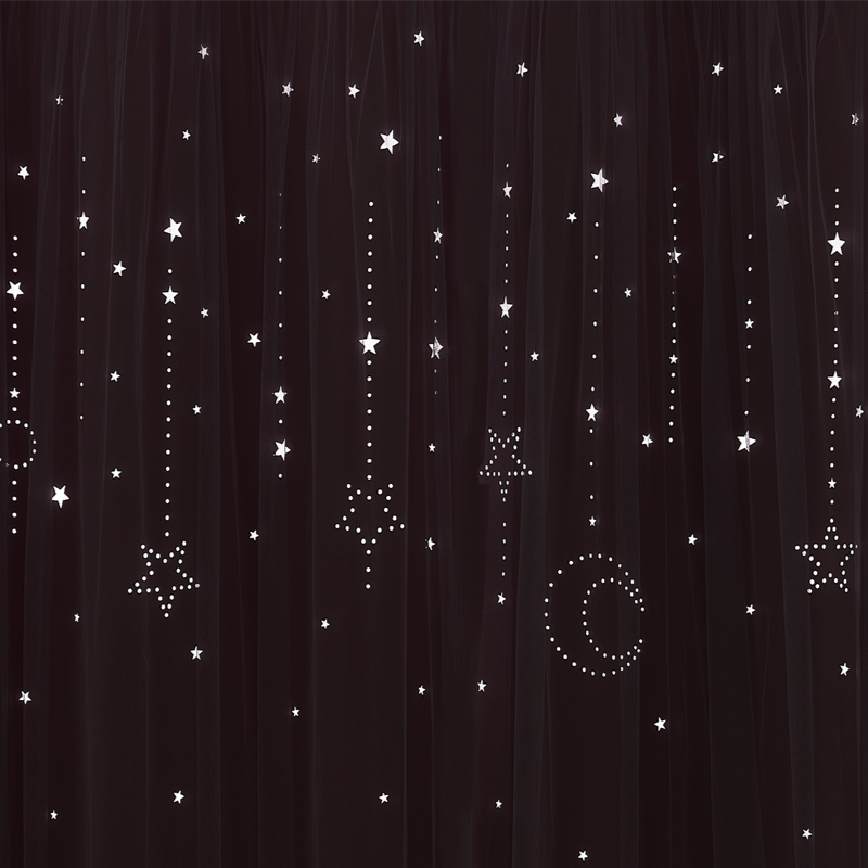Mørkeblåt børnegardin med stjerner og tyl: Drømmende Nætter Vent