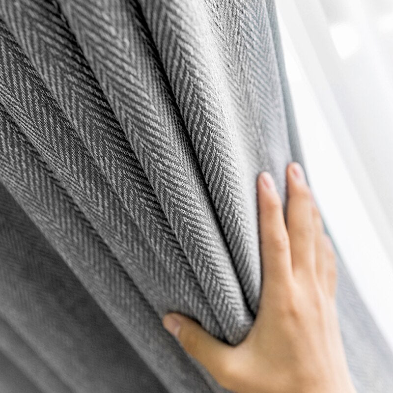 Oplev den Unikke Kvalitet af Vores Mørkegråt Mørklægningsgardin med Sildebensmønster