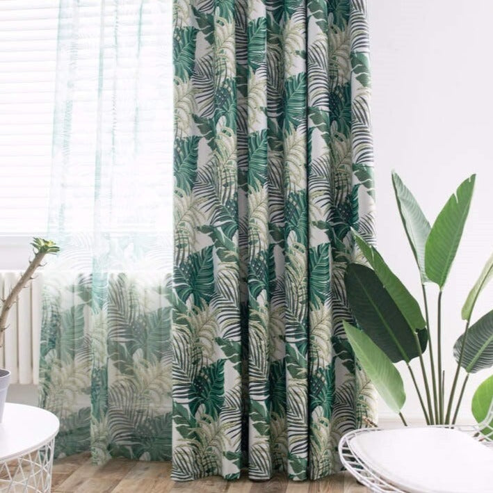 Få ro i sindet med et effektivt Mørklægningsgardin med tropisk bladprint