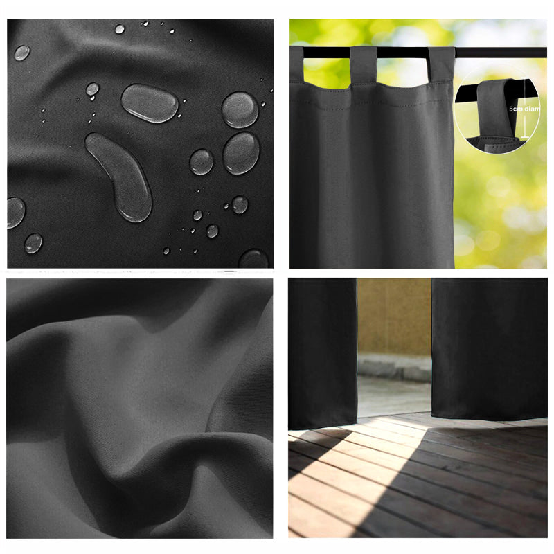 Gør din terrasse klar til afslapning og hygge med dette stilfulde og funktionelle mørke udendørs gardin med stropper. Det er en lille investering med stor effekt på din livskvalitet udendørs.