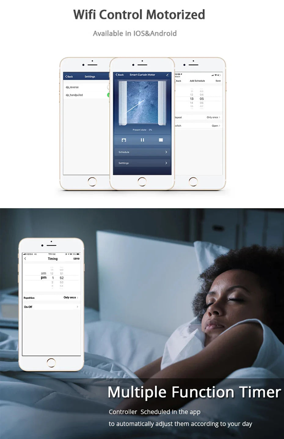 - Understøtter iOS og Android: Styr gardinerne fra din iPhone eller Android-enhed.
