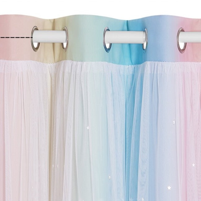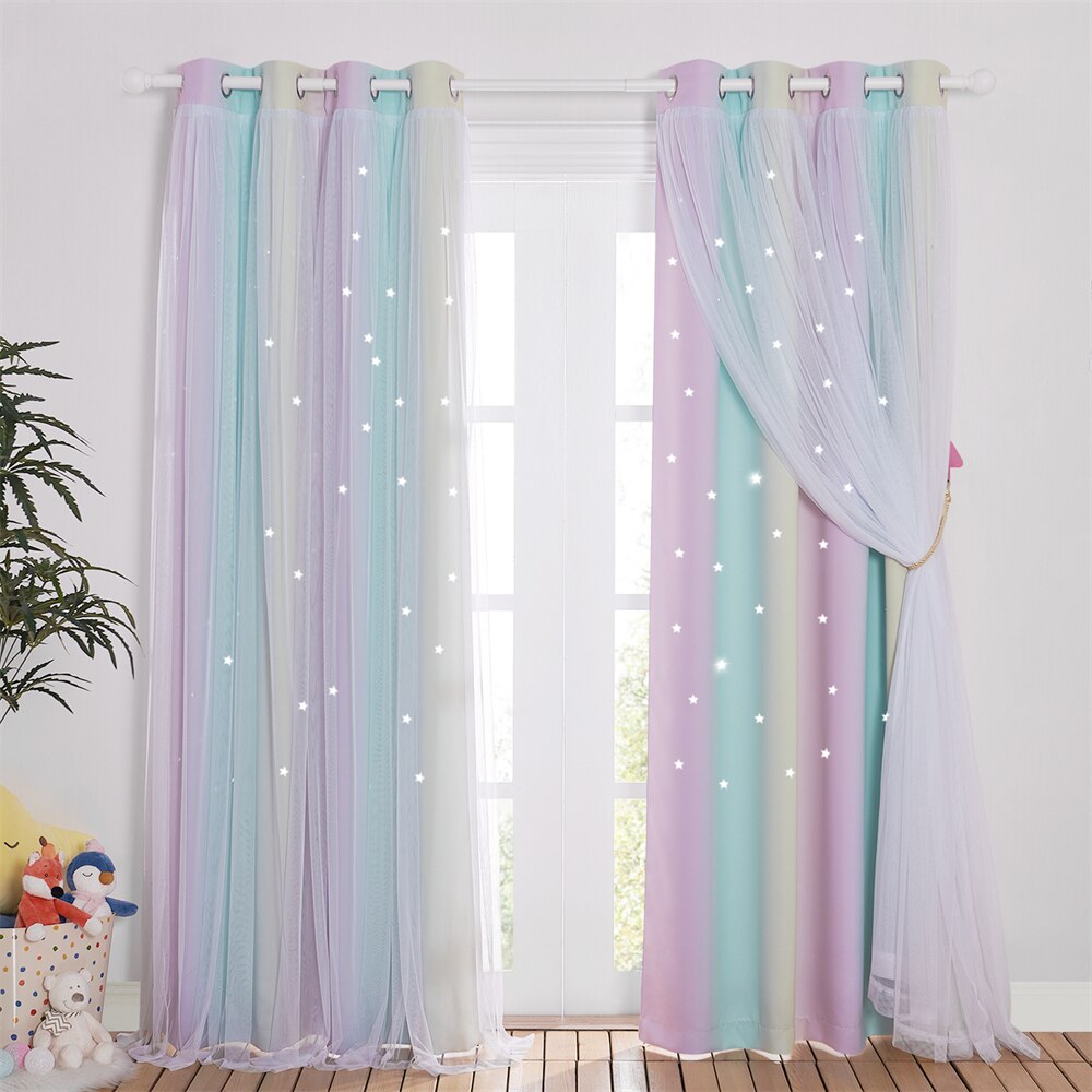 Giv dit barns værelse den magi, det fortjener, med dette regnbue gardin med stjerner til pigeværelse.