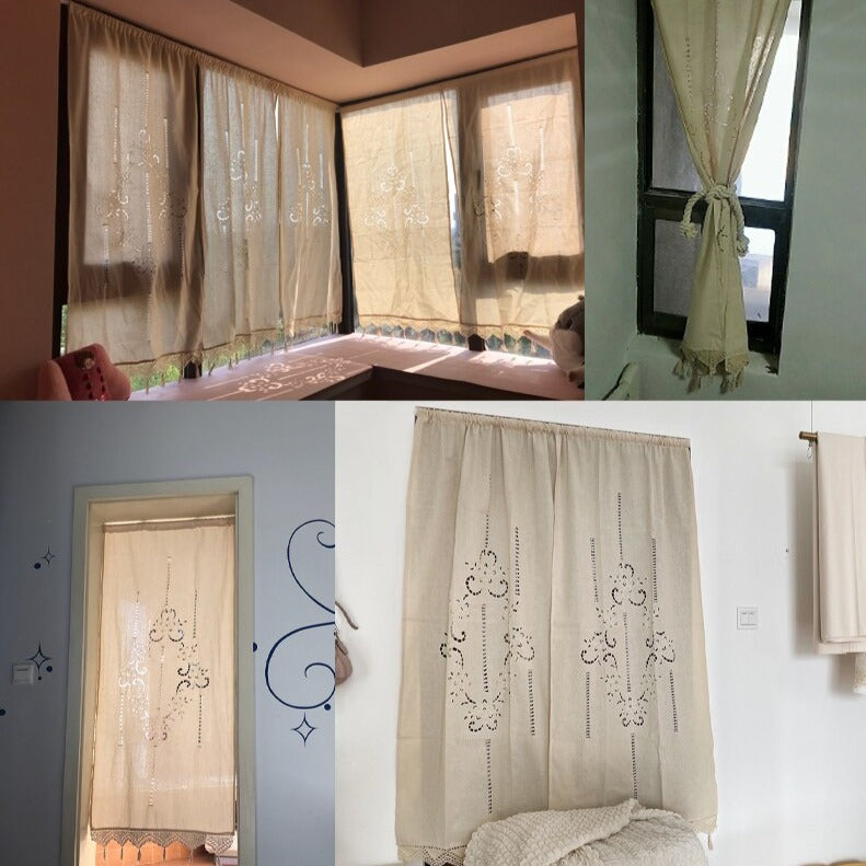 Forvandl dit hjem med vores smukke, rustikke gardin. Dette gardin er ikke bare et vinduesdækken; det er et stykke håndværk, der tilføjer en varm og indbydende atmosfære til ethvert rum. Forestil dig det bløde, naturlige lys, der filtreres gennem det fine broderi, skabende et hyggeligt og afslappende miljø. Perfekt til dig, der elsker en landlig, boheme eller vintage indretningsstil. Med dette gardin får du en følelse af autencitet og hygge, der inviterer til ro og velvære i dit hjem.