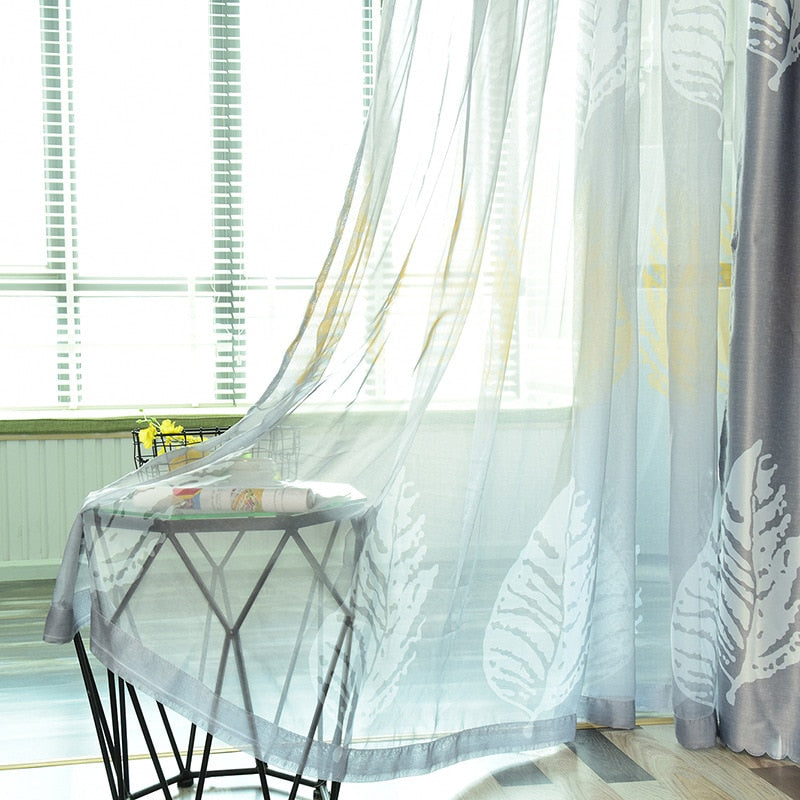 Skab stemning med et transparent gardin og dets moderne bladmønster